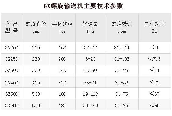 GX型螺旋輸送機具有整機可靠性高、結構簡單、壽命長、適應性強、運送距離長(最長可達70m),工藝布置靈活,可多點進料、多點卸料,安裝維修方便等優點。
