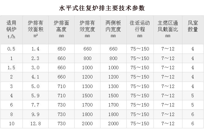 水平式往復推飼爐排是一種機械化的鍋爐層燃設備,一般可為蒸發量0.5~10t/h的往復爐排鍋爐配套,適宜燃燒煙煤、褐煤和泥煤等。往復爐排對煤質要求有所降低,可燃用有粘結性、多灰、難以著火的低質煙煤,比鏈條爐有較好的煤種適應性。
